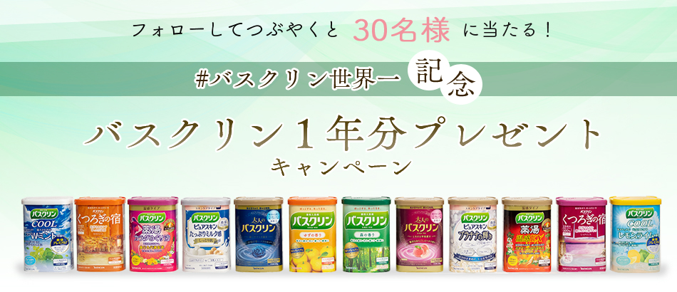 認定を記念して、バスクリンシリーズ1年分(12種セット)を30名様にプレゼントいたします。