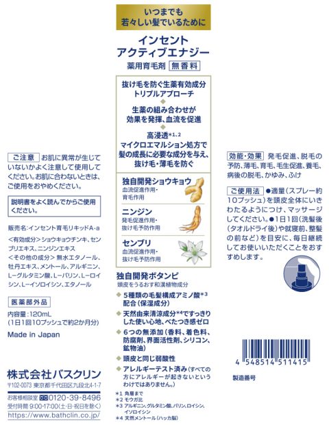 - 医薬部外品(販売名:インセント育毛リキッドA-a)