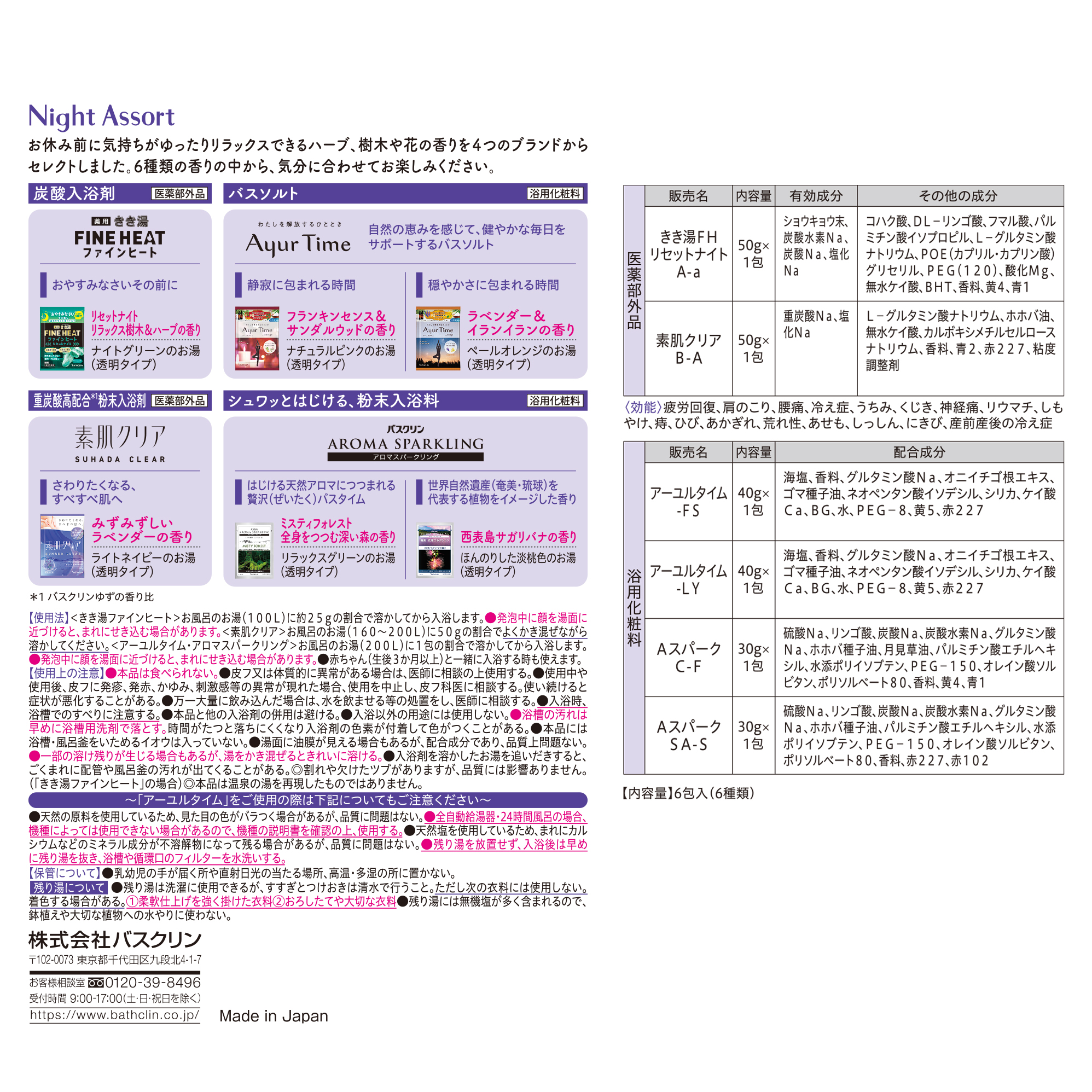 - 炭酸入浴剤・バスソルト・シュワっとはじける粉末入浴料など、香りの違いだけではないバリエーションが楽しめます。